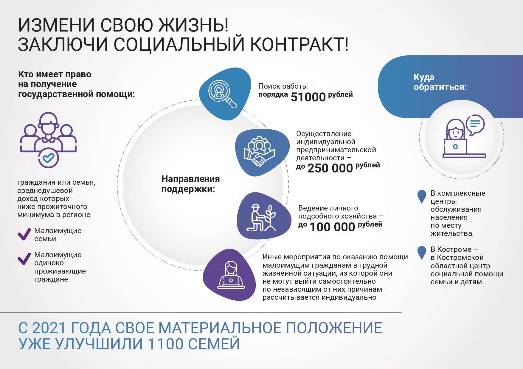 - для возмещения причинённого ущерба в соответствии с постановлением администрации Костромской области от 27.05.2008 № 151-а (в размере, не превышающем сумму ущерба, с учетом выплат из других источников из расчета до 5 тыс, руб. на человека, не более 25 тыс. руб. на семью) обратиться с заявлением в администрацию муниципального образования Сандогорское сельское поселение.